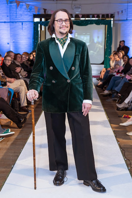 I really enjoyed the fashion show. Starting with the 1940s, the models reappeared in clothing from each subsequent decade, right up to the 1980s. The musical accompaniment to which the models strutted their vintage stuff matched the particular era. It was quite superb.