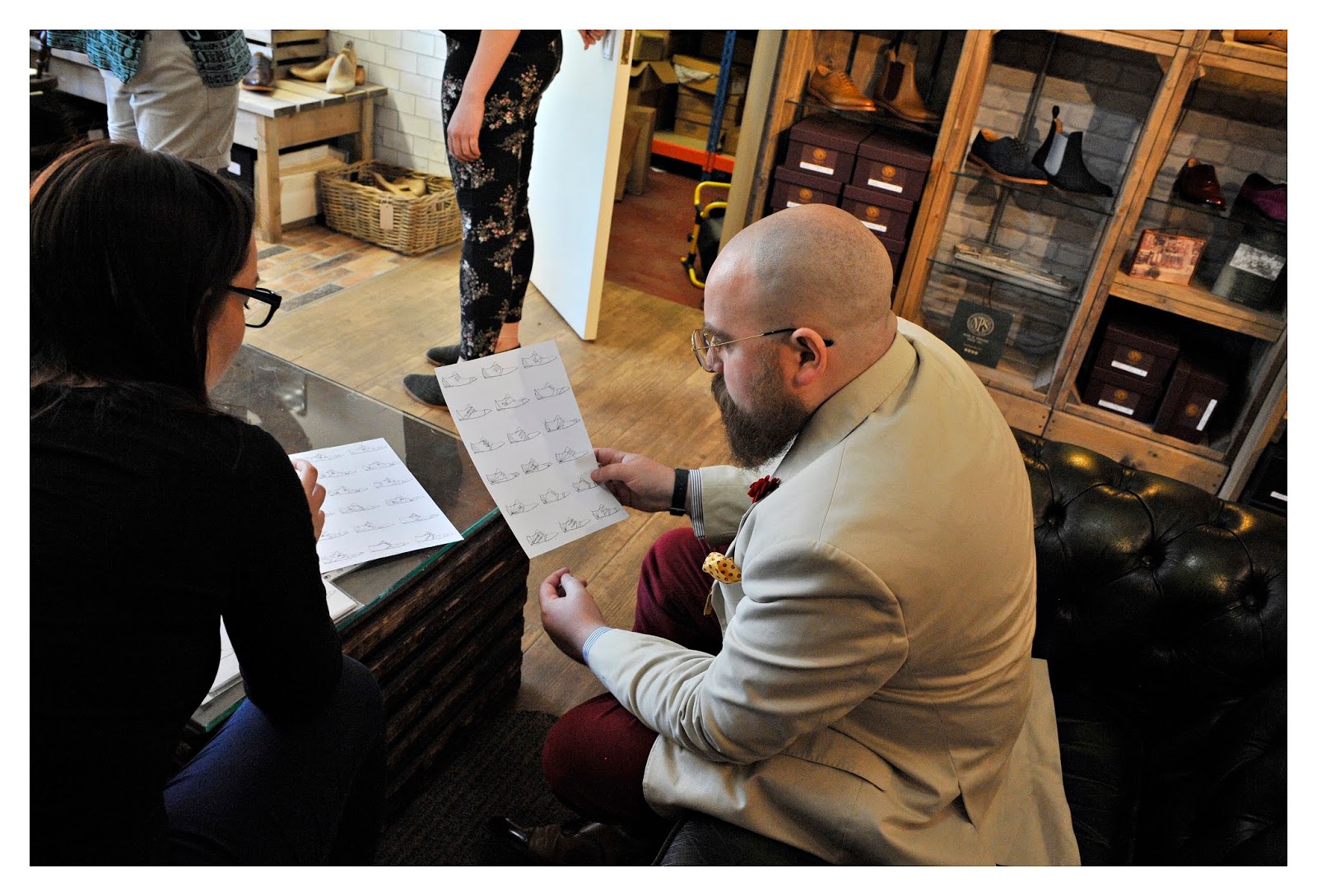 At the end of the factory tour, we all headed over to the factory shop where I got the opportunity to take a thorough look at the finished Percy Stride shoes. The first collection is called Timeless and is made up of a range of oxford shoes. With that all-important Goodyear welt construction, this means that shoes can be re-heeled or re-soled.