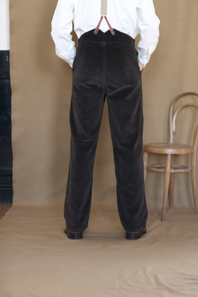 Wearing trousers around your natural waist, rather than at your hips is very authentic indeed. It feels rather nice too, I must confess. I find them much more comfortable compared to the more modern style of trew. Search for ‘British Army dress trousers’ on eBay if you are watching the pennies. Otherwise, save up and get yourself a pair from Darcy Clothing or Old Town. Moleskin and corduroy are two of my favourite trouser fabrics.