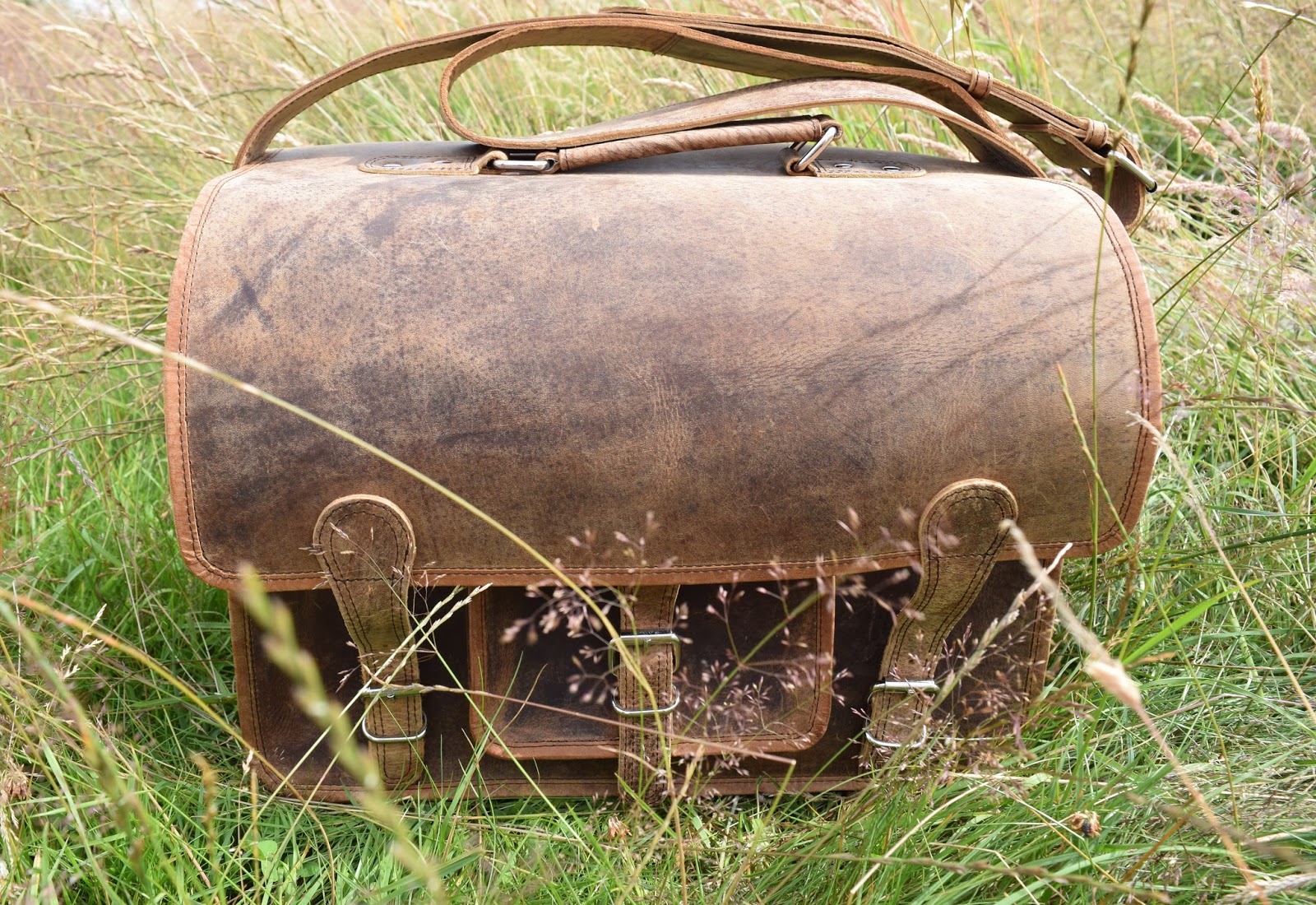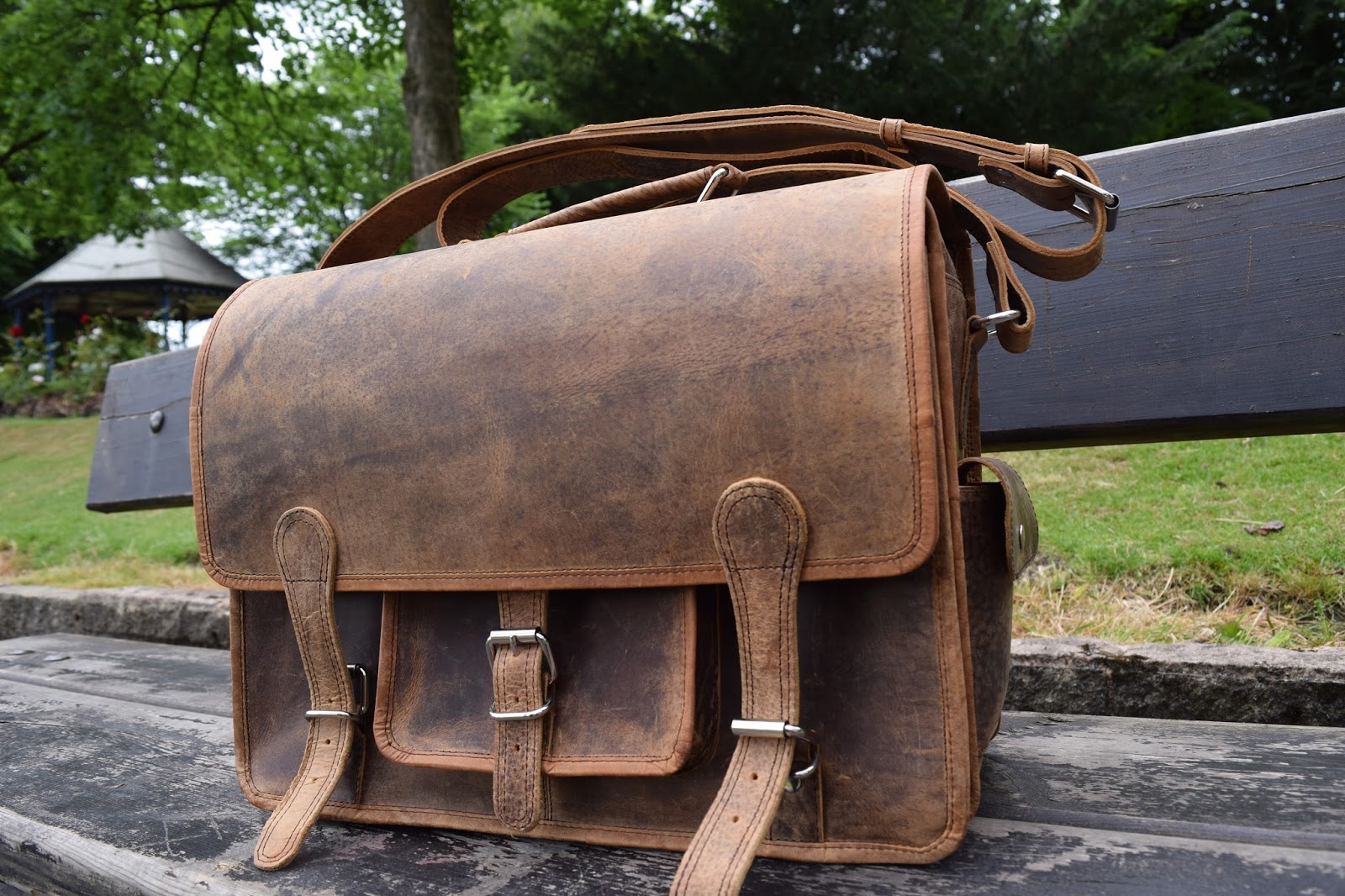 After much deliberation, I picked their medium Overlander satchel which measures an impressive 16”.