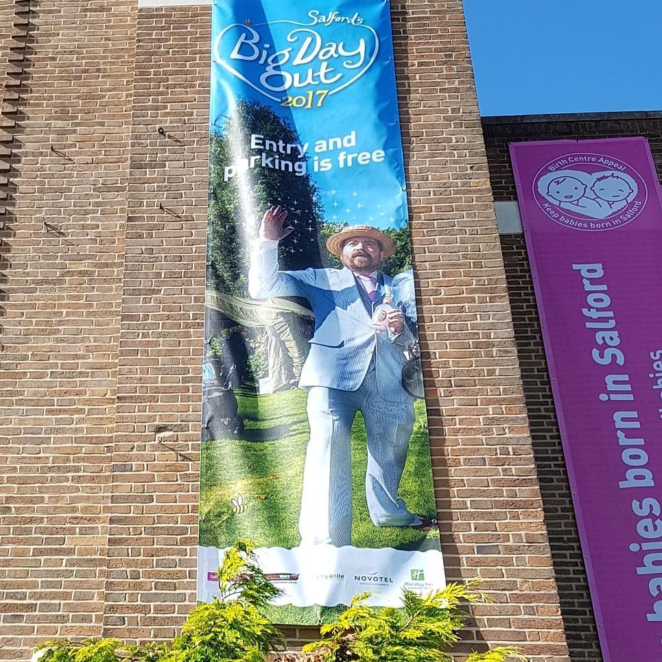 Sauntering to the office one morning and what should I be greeted with? Well, I'm going to tell you. A ten foot banner of your favourite protagonist, draped over the town hall.
